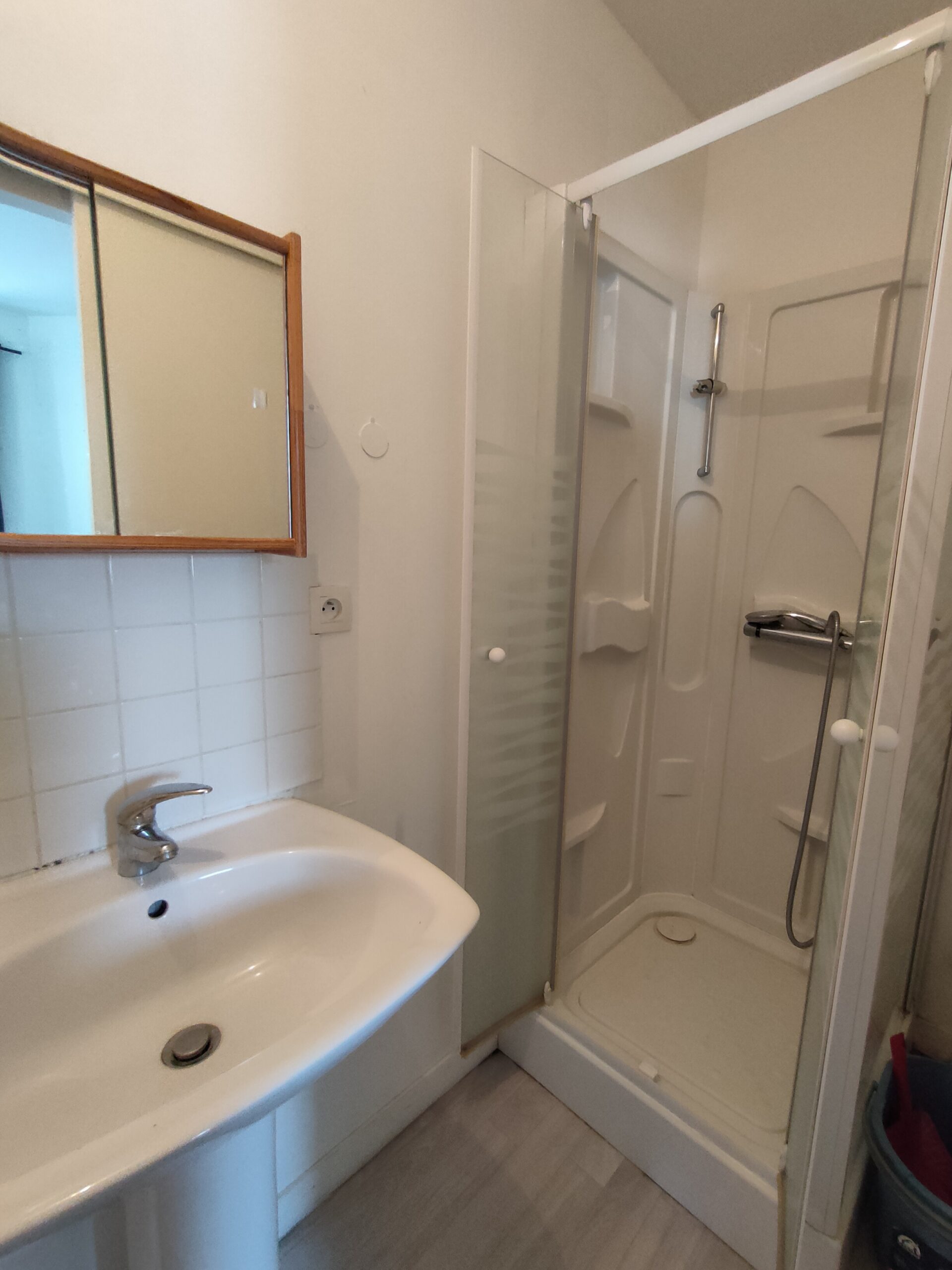 - salle d’eau avec vasque, WC, douche et sèche-serviette